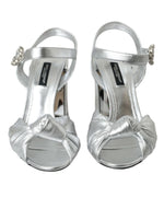 Dolce & Gabbana Silver Lambskin Leather Heels Sandals Shoes