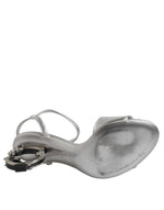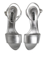 Dolce & Gabbana Silver Leather DG Heels Keira Sandals Shoes