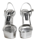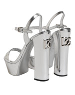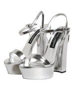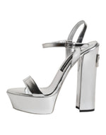 Dolce & Gabbana Silver Leather Platform Keira Sandals Shoes