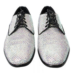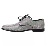 Dolce & Gabbana Silver Leather Rhinestones Derby Shoes