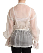 Dolce & Gabbana White Ascot Collar Long Sleeves Blouse Top