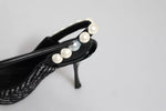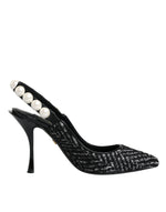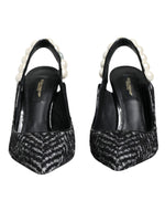 Dolce & Gabbana White Black Chevron Faux Pearl Slingback Shoes