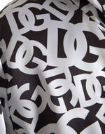 Dolce & Gabbana White Black Logo Hooded Full Zip Bomber Jacket