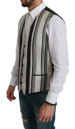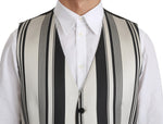 Dolce & Gabbana White Black Stripes Waistcoat Formal Vest