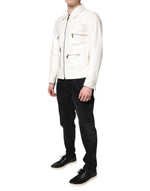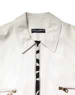 Dolce & Gabbana White Collared Full Zip Biker Coat Jacket