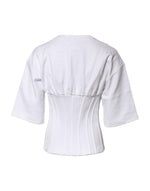 Dolce & Gabbana White Cotton Blend 3/4 Sleeves Blouse Top