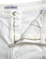 Dolce & Gabbana White Cotton Cropped Wide Leg Denim Jeans
