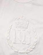 Dolce & Gabbana White Cotton DG Crown Embossed Men T-shirt