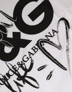 Dolce & Gabbana White Cotton Logo Print Round Neck T-shirt