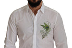 Dolce & Gabbana White Cotton Peacock Feather Formal GOLD Shirt