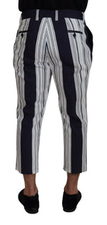 Dolce & Gabbana White Cotton Striped Cropped Pants