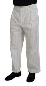 Dolce & Gabbana White Cotton Striped Formal Pants