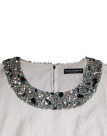 Dolce & Gabbana White Crystal Embellished Jacquard Brocade Mini Dress