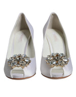 Dolce & Gabbana White Crystals Peep Toe Satin Pumps Shoes