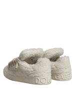 Dolce & Gabbana White Faux Shearling Low Top Sneakers Shoes