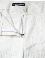 Dolce & Gabbana White Floral Brocade Cotton Cropped Pants
