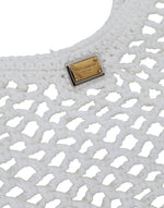 Dolce & Gabbana White Green Knitted Cotton Logo Shopping Tote Bag