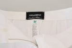 Dolce & Gabbana White Jacquard Cotton Blend Mid Waist Pants