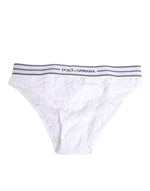 Dolce & Gabbana White Lace Slip Brief Logo Waistband Underwear