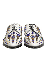 Dolce & Gabbana White Leather Crystals Embellished Dress Shoes