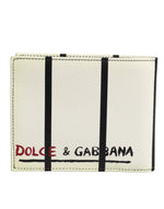 Dolce & Gabbana White Leather DG Crown Royals Bifold Card Holder Wallet