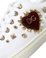 Dolce & Gabbana White Leather Gold Red Heart Sneakers Shoes