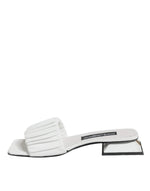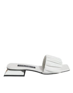 Dolce & Gabbana White Leather Slides Flats Sandals Shoes