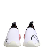Gorgeous, 100% Authentic Dolce & Gabbana Sorrento sneakers in a stylish white and pink color combination. These low-top slip-on sneakers feature a modern, sporty silhouette with a stretch-knit upper for maximum comfort and flexibility. The design is finished with logo detailing and a sculpted rubber sole, making them both fashionable and functional.