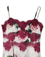 Dolce & Gabbana White Rose Print Satin Lace Tank Top Lingerie