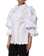 Dolce & Gabbana White Ruffled Lace Embellished Blouse Top