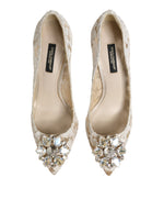 Dolce & Gabbana White Taormina Lace Crystal Heel Pumps Shoes