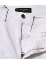 Dolce & Gabbana White Tattered Cotton High Waist Denim Jeans