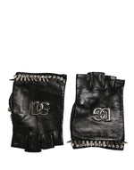 Dolce & Gabbana Women Black Embellished Wrist Length Mitten Gloves