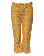 Dolce & Gabbana Yellow Floral Lace Mid Waist Capri Pants