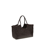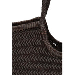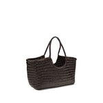 The Nantucket Big Shoulder Bag by Dragon Diffusion is a hand-woven basket made of high-quality buffalo calfskin. Unlined, this bag features a natural and elegant design with double handles for convenient carry. Inside, an antiqued St. Christopher medal charm is hand-stitched as a symbol of protection for travelers. A functional and sophisticated design that combines craftsmanship, tradition and timeless style.