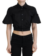 Dsquared² Black Collared Button Down Short Sleeve Cropped Top