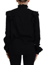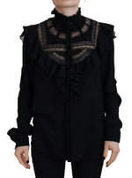 Dsquared² Black Lace Trim Turtle Neck Long Sleeves Top