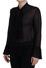 Dsquared² Black Viscose Long Sleeves See Through Blouse Top