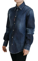 Dsquared² Blue Washed Cotton Button Down Collared Denim Top