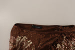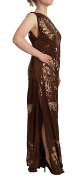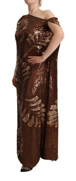 Dsquared² Brown Leaf Sequined Shift One Shoulder Long Dress