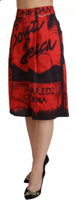 Dsquared² Red Printed High Waist Wide Leg Cropped Pants