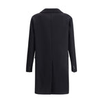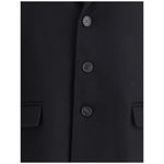 DsQuared2’s wool midi Coat is an elegant, structured garment made of felted wool for a warm, compact texture. The single-breasted design is complemented by a front button closure, side pockets and long sleeves. The interior is finished with a monogrammed fabric lining, the brand’s signature detail. Back straps add a tailored touch, enhancing the silhouette with character and sophistication.