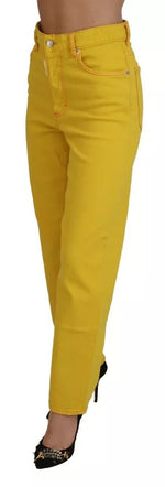 Dsquared² Yellow Cotton High Waist Straight Denim Boston Jeans