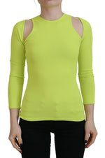 Dsquared² Yellow Green Viscose Open Shoulder Long Sleeves Top