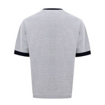 Dunhill Grey Pique Cotton T-Shirt. Contrasting blue knit collar, small metal tag with logo applied on the side, regular fit