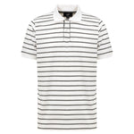 Dunhill Cotton Striped Polo. Soft black/white striped cotton, white knitted collar, button fastening, small side vents. Regular fit