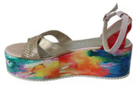 EBARRITO Multicolor Leather Ankle Strap Wedge Heel Sandals Shoes
