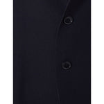 Lardini Two Button Wool Blend Jacket In blue, two button fastening, two front patch pockets and small pocket on the side, inside pocket, logo flower on collar. Composition: 54% Polyester, 44% Wool, 2% Elastane Inner...