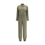Ella’s Alamari Jumpsuit combines practicality and style in a refined design. Featuring a concealed button front and a classic collar, it features front welt pockets with flaps for a functional touch. The elastic waistband and cuffs ensure a comfortable and tailored fit, perfect for a modern and versatile look.