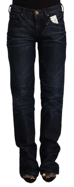 Ermanno Scervino Dark Blue Mid Waist Cotton Denim Straight Jeans